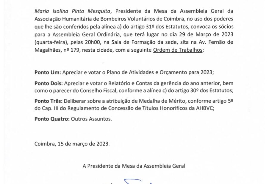 Hoje, dia 07 de abril de estamos todos de parabéns, porque a nossa Associação Humanitária de Bombeiros Voluntários de Coimbra completa 134 anos. 134 anos… Ler mais »A AHBVC celebra 134 anos “a proteger Coimbra”